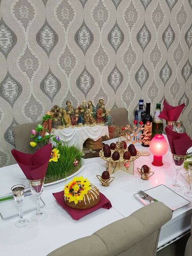 Мы всегда встречаем Пасху всей семёй. Мы любим этот светлый праздник и с каждым годом я больше понимаю смысл этого праздника. Наша семья очень красиво украшает Пасхальный стол. Каждый год моя бабушка красит яйца не химическими красителями, а луковой шелухой. С церкви после Святой Литургии Чракалуйц мы приносим в дом зажжённые лампады. Этот свет символизирует свет Вифлиеемской звезды указавшей волхвам дорогу к младенцу Христу.