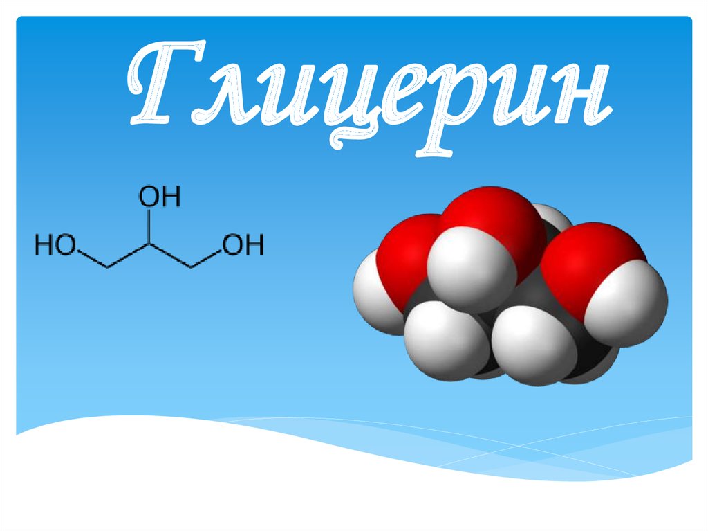 Օրգանական բարդ, c3h53 բանաձեւով եռահատոր սպիրտների ամենապարզ ներկայացուցիչը: Քաղցր համով մածուցիկ թափանցիկ հեղուկ է ։ Ոչ թունավոր, ի տարբերություն, օրինակ, ամենապարզ երկատոմային սպիրտների. Հոմանիշներ: Գլիցերոլ, propantriol-1,2,3. Քիմիական բանաձեւը ‘ C₃H₈O₃, HOCH₂-CH(OH)-CH₂OH:Հալման կետը ‘ 17,9 °C Եռման ջերմաստիճանը ‘ 290 °C